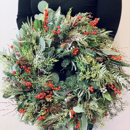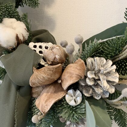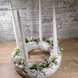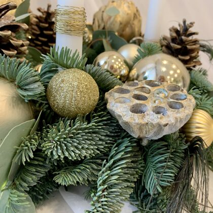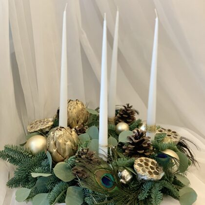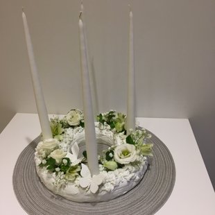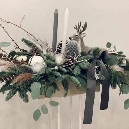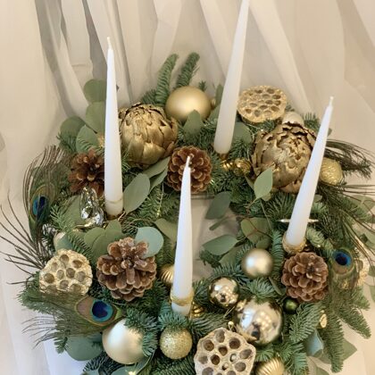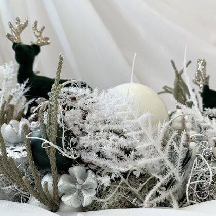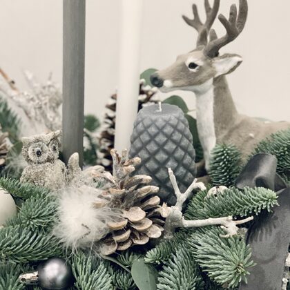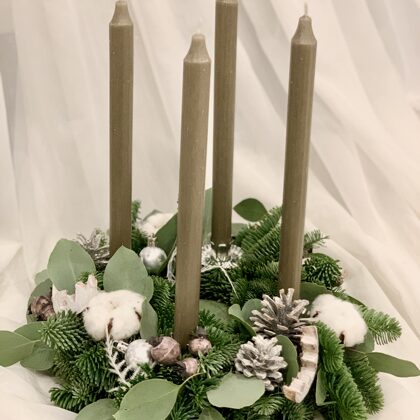 Adventes vainagi no dabīgajām, nebirstošajām sudrabegles skujām, miksēti ar eikaliptiem vai citiem dabas materiāliem. Iespējams pasūtīt kompozīcijas kastēs, to pieraksti sadaļā "Papildus vēlmes"