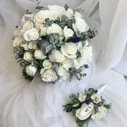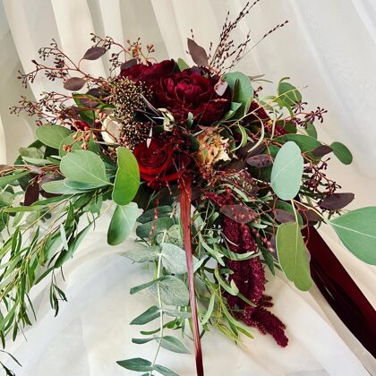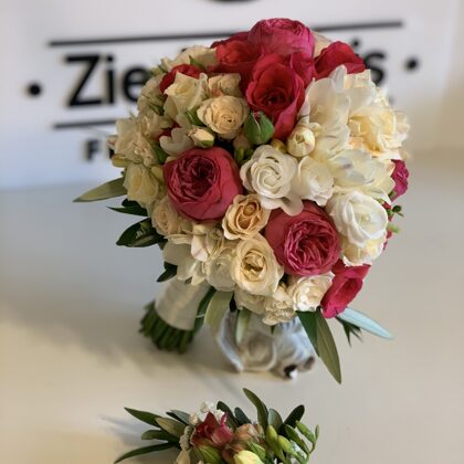 Ziemas pušķis ar kokvilnu un čiekuriem